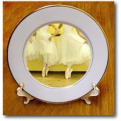 Ballerinas of the National Ballet wearing a romantic white dress Plate is new and handcrafted utilizing a unique process resulting in a stunning high gloss finish. White porcelain plate measures 8.25 inches in diameter, trimed with two 24 kart gold rims and comes with a stand.