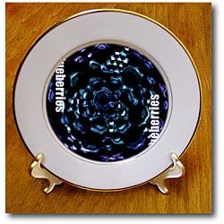 Blueberries digital artwork of blueberries in a pile using light and darker blues Plate is new and handcrafted utilizing a unique process resulting in a stunning high gloss finish. White porcelain plate measures 8.25 inches in diameter, trimed with two 24 kart gold rims and comes with a stand.